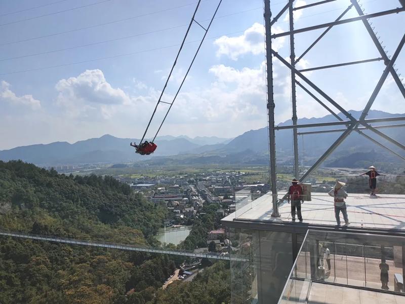 位于悬崖边,无动力拉满,惯性摆动下,在海拔约400米的高空摇摆下的失重体验,常让人感到心跳加速、脚步发软。