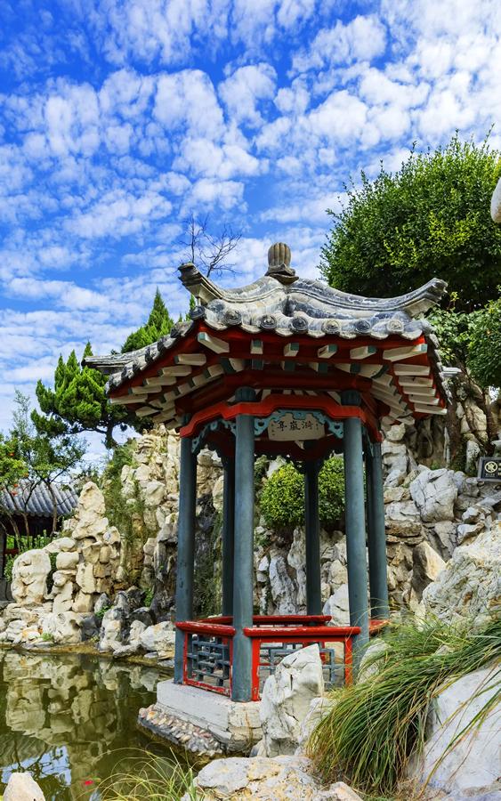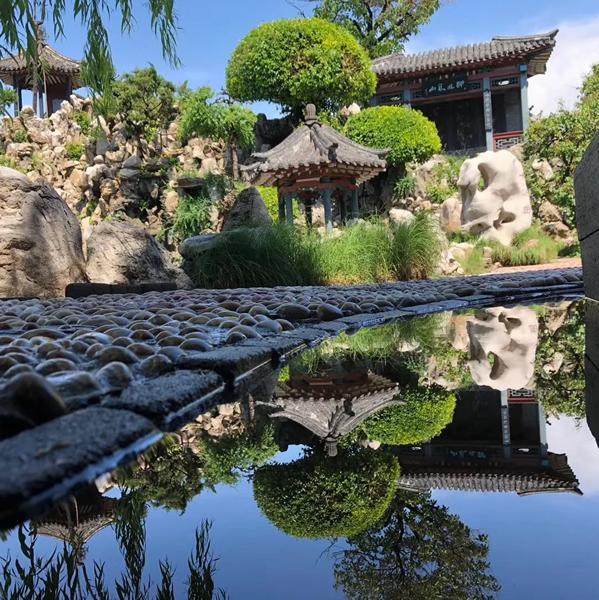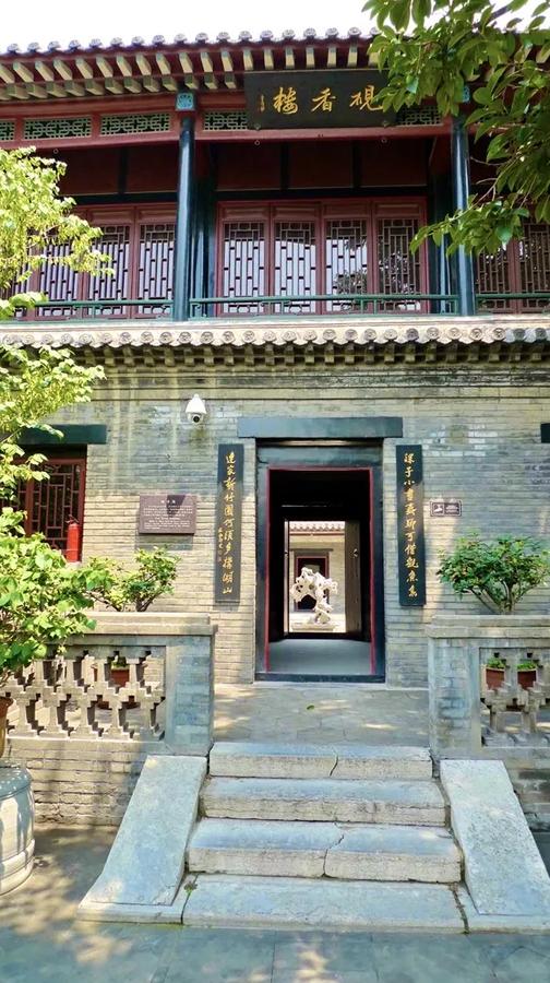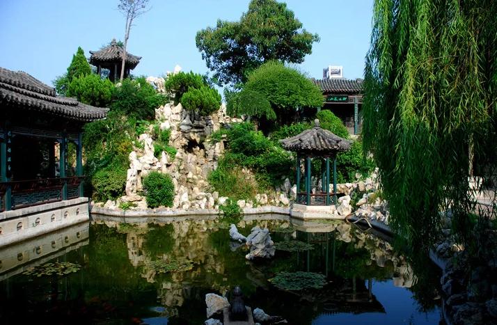 十笏园是中国北方园林袖珍式建筑,在吸纳南北园林建筑精髓的基础上,建有假山、长廊、池塘、曲桥、亭榭、古典书斋等景致,雕梁画栋,窗花雅致,青砖灰瓦相映,曲径通幽,亭台楼阁遍布其间,尽显古朴典雅之风。
