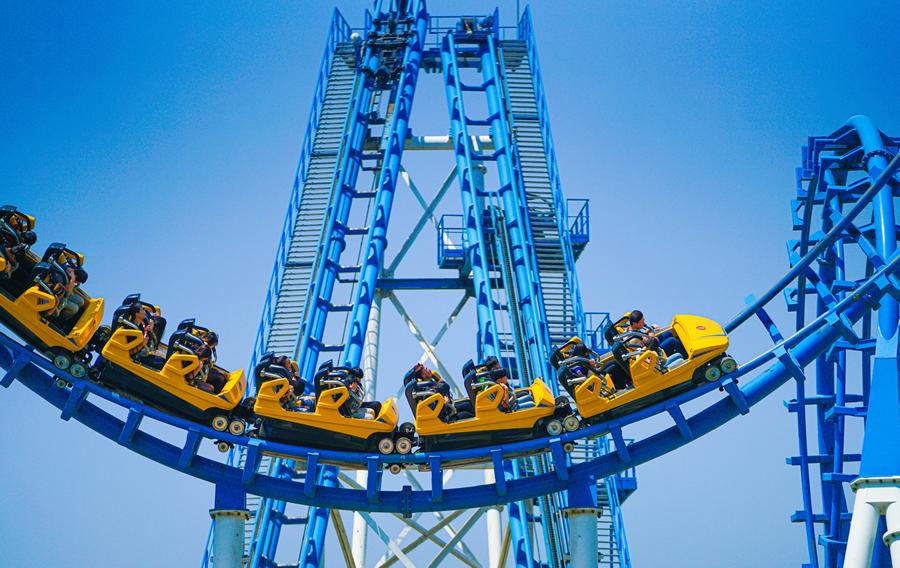 倒冲过山车,高度与速度兼具。奇异的倒退提升,迅猛的急速俯冲,多次的上下捻转颠倒,令观者欢欣惊叹,能给坐者带来失重、离心状态下的惊险之乐!