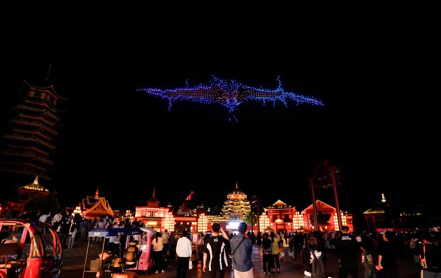 室内河道漂流结合歌舞机器人表演,展示56个民族风土人情。