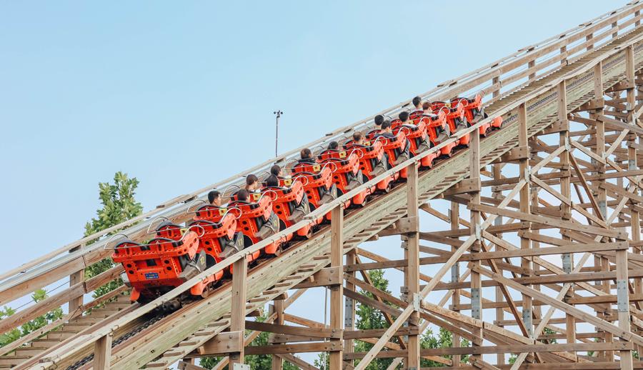 全木质过山车,轨道和车体由松木拼接,高度约40余米,超过10次的太空零重力感受,挑战感官刺激的极致体验。从30多米的高度俯冲而下,带来约1200米的呼啸之旅,观者欢欣惊叹,坐者饱尝惊险之乐。