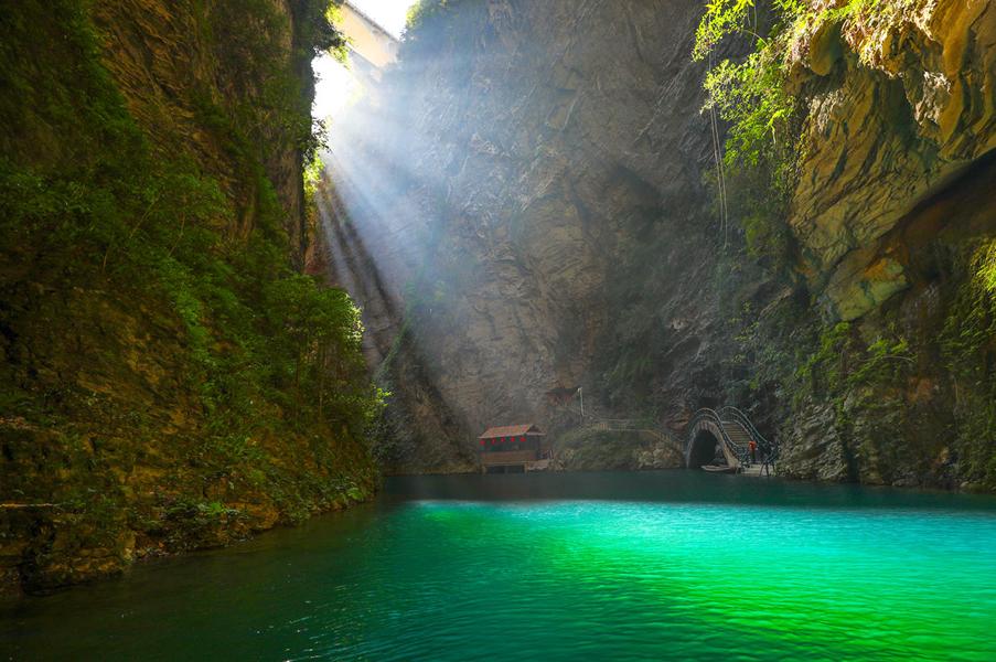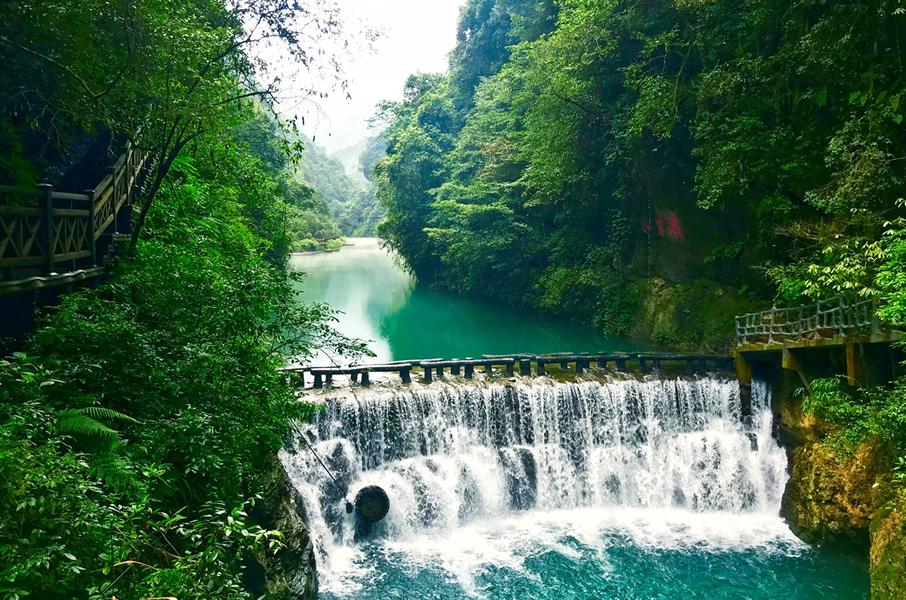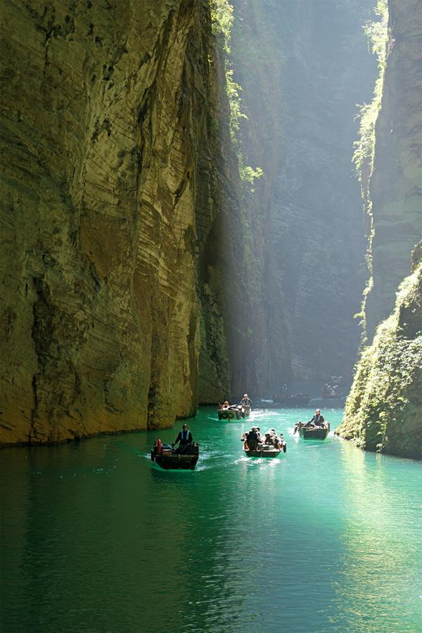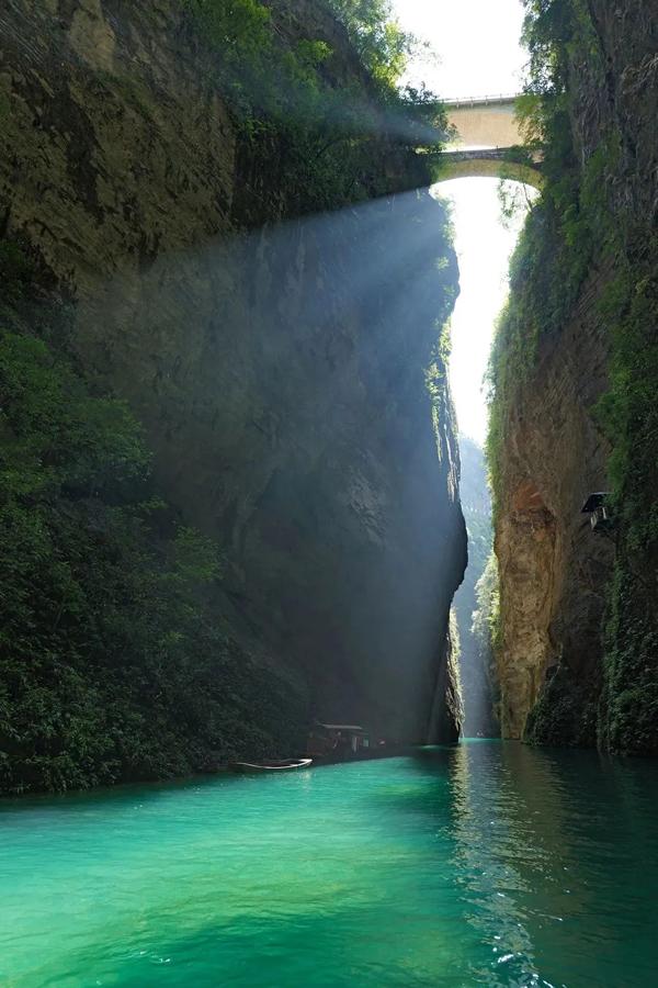 步踏罡步云梯,似可轻摘满天繁星;金龙渊峡谷两岸绝壁陡峭高耸,飞狐成群栖居出没;游船行至此处,眼前便见一线天奇景,山壁合缝疑无路,行至深处渐现五尺门;乘坐船穿越峡谷,堪称屏山峡谷游览线路的精华核心路段。