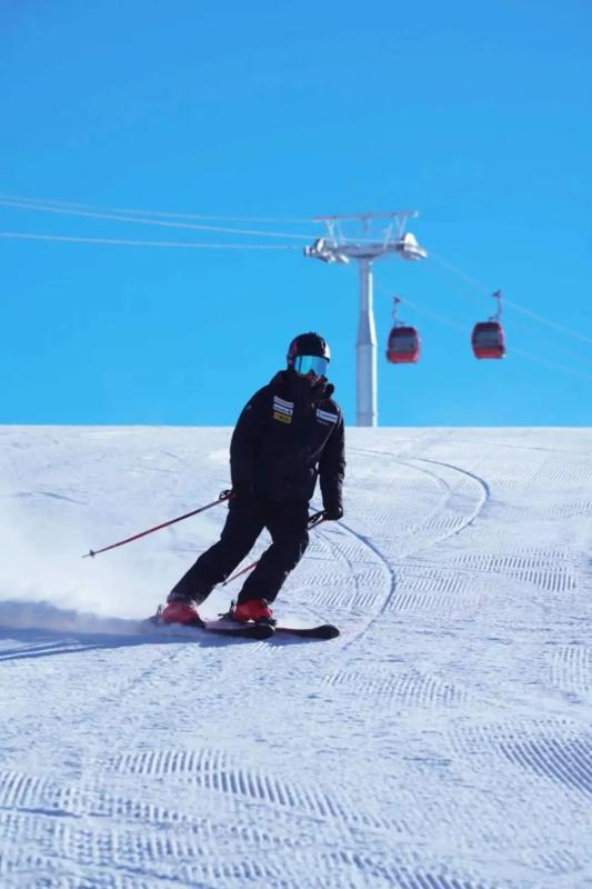 丝路大道长约3500米,平均坡度27%,是度假区较陡的雪道。