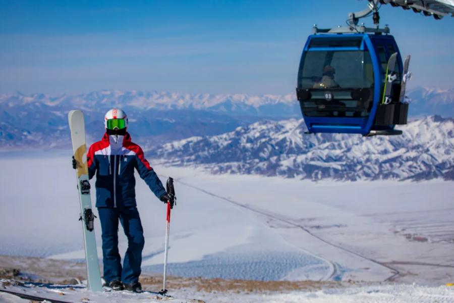 赛里木湖国际滑雪场度假区,位于赛里木湖景区东南角的婆罗科努山北坡,总规划面积约40.1平方公里,雪道垂直落差约为1314米,海拔高度约为3539米,是滑雪爱好者挑战自我的天堂。是全国雪场中平均海拔较高、垂直落差较大的滑雪场之一。雪场一边是湛蓝的赛里木湖,一边是洁白的雪山,风景壮丽。