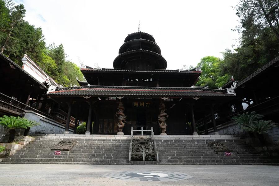 3层3进重檐廊柱式建筑,供奉土家族先祖廪君(巴务相)。