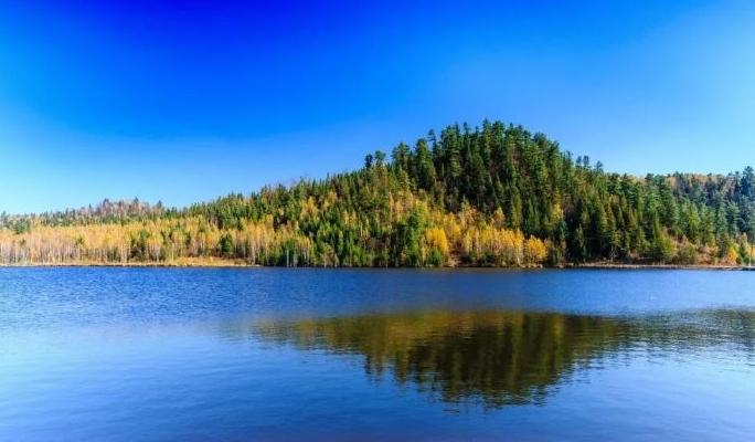 天赐湖 林荫下,穿过约1200米林间漫步道,抵达天赐湖,典型的高山湖泊,湖面平静如镜,五花山倒映在水面上,景色优美。