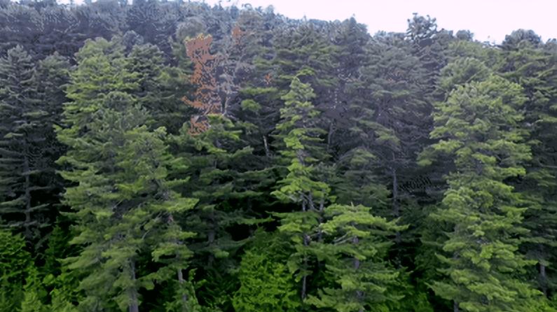 五营红松林海景区保存完整的红松原始森林带,红松高大挺拔。观涛塔高约46