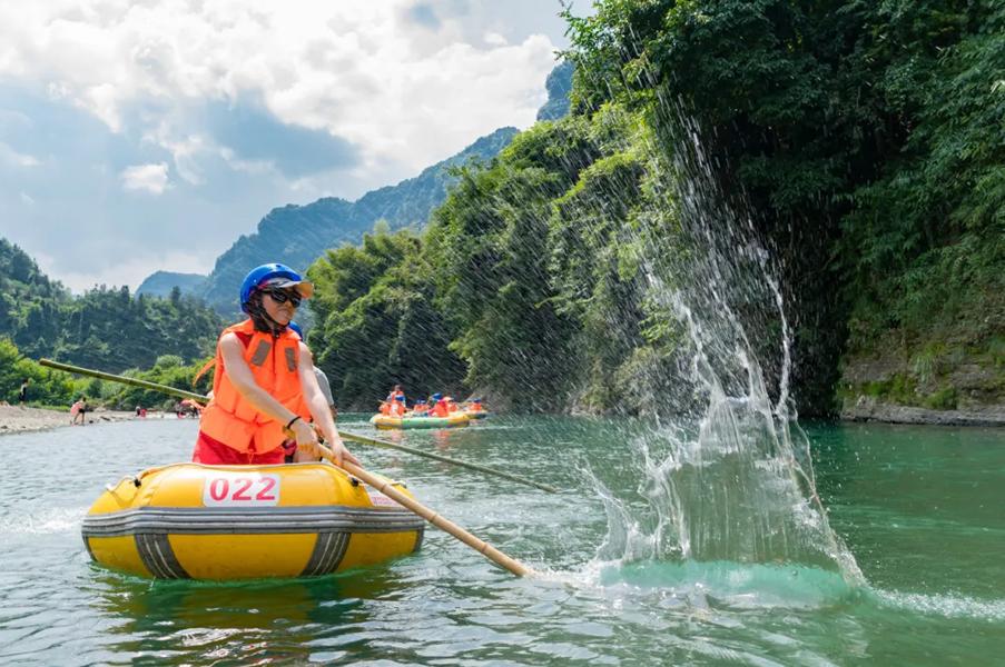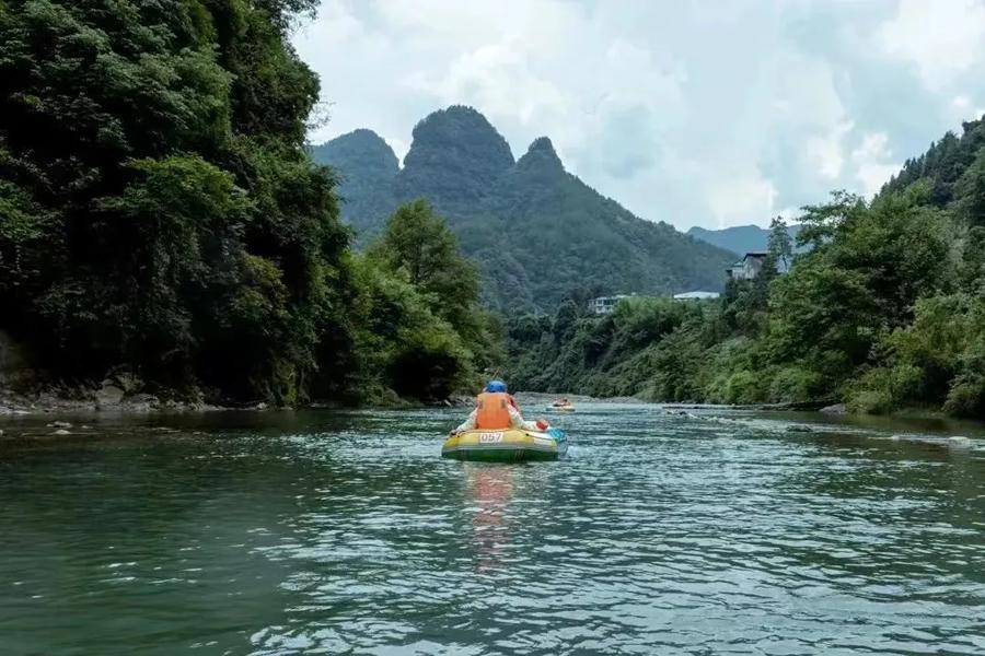 以地心漂流为核心吸引点,漂程约2小时,漂流河道总长约 6 公里,线路明暗双生,约4公里地上河段,连续20余处险滩急弯,浪花飞溅释放夏日的燥热;洞内恒温凉爽的2公里地下穿洞,驶入2.5亿年的溶洞奇观,沿途可欣赏溶洞内千姿百态的石钟乳、石柱、石瀑等地质奇观,钟乳石在五彩灯光下如梦如幻,还有“大佛殿”“飞云桥”等特色景观,仿佛置身“地下仙宫”。