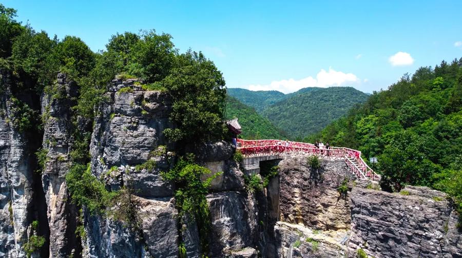 视野开阔,四周奇峰环绕,悬浮空中感强烈,随手即可拍出 “仙侠意境美照”。