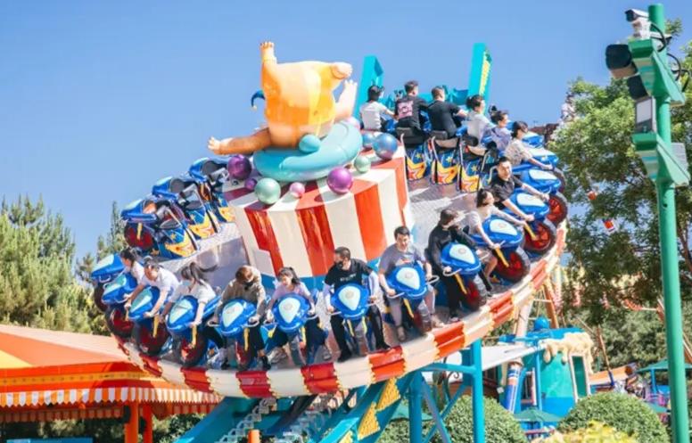 在优美、轻快的旋律中,大型的转盘和转台错向旋转、摇摆,在离心力的作用下上下飞旋,与此同时饱览园区美景。