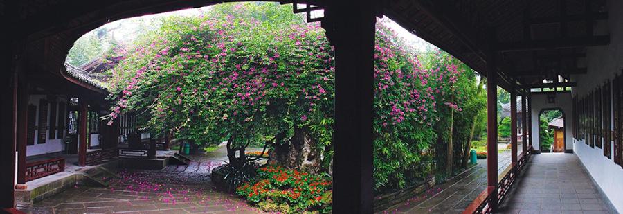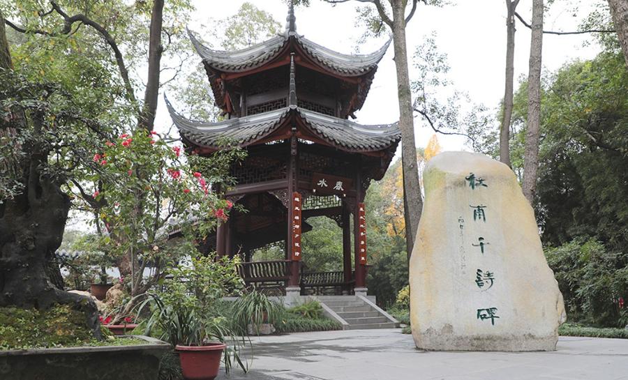 成都杜甫草堂在中国文学史上具有重要地位的地方。其古建筑以木质穿斗式结构为特色,代表性建筑有大廨、诗史堂、工部祠、茅屋等。其特色诗意园林景观有盆景园、兰园、梅园等。草堂荷花展已成为草堂的一项传统文化展览。