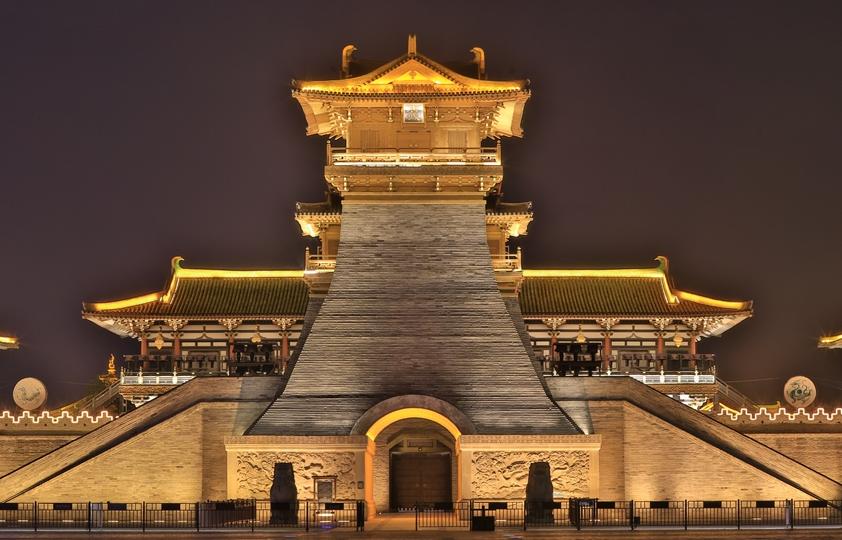 花萼相辉楼是唐玄宗宴乐场所,殿中仙山环绕,中间是巨大的酒池,两层台阶是环形舞台。盛世唐城内的花萼相辉楼以原楼的设计而建,再现这座盛世名楼的风采。