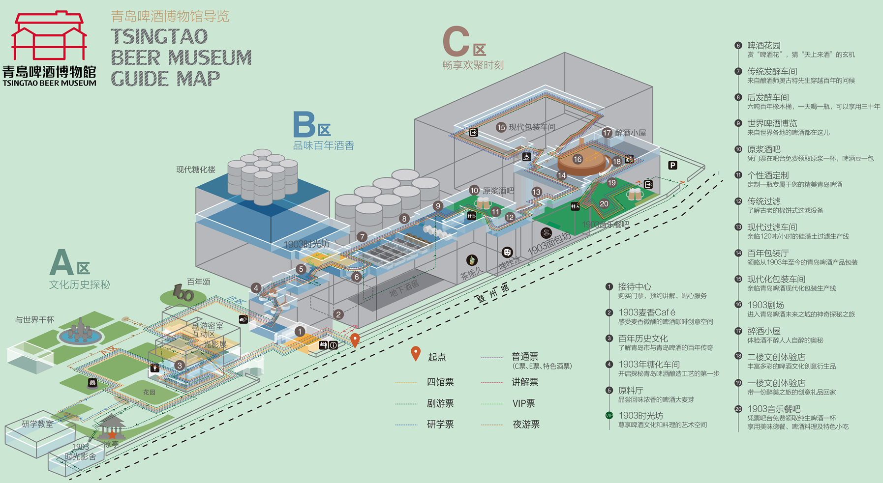 青岛啤酒博物馆展出面积约6000多平方米,共分为三个展区;