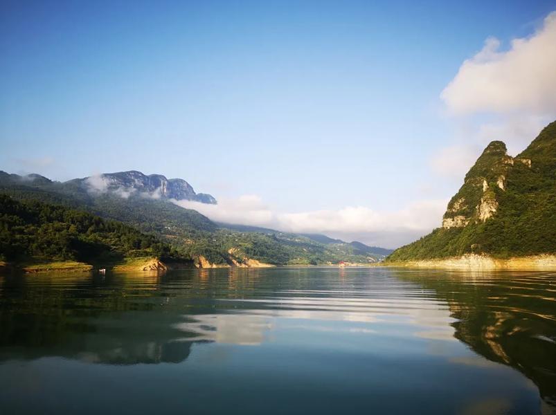 秋日的清江格外秀丽,别具风情。两岸丛峰相拥,峰峦晕染羞红;绝壁延绵向远,丹霞漫展清姿;江水碧绿泛涟漪,水鸟翩飞荡清波,丛丛倒影逐江来。可谓清江秋色赛春芳,半河风情醉人心扉。去了清江大峡谷才知道,船行碧波中,恰似如行画中。