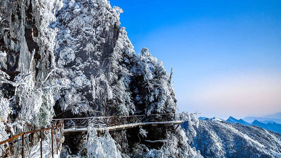 红豆杉栈道 位于罗盘顶南坡,因栈道沿线有多颗红豆杉而得名,栈道东起于玻璃栈道,西止于巴盐古驿,总长度约8公里,沿途共经15个景点、8个观景平台。在栈道上可春享百花奇放、遍地花香,夏观罗盘云海奇观,秋览漫山红叶,冬赏白雪皑皑、银装素裹。