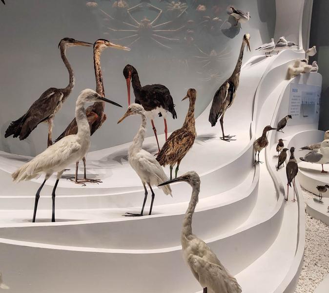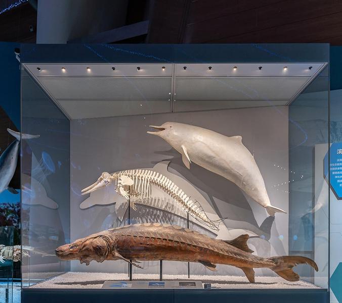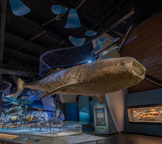 有15个展厅如远古海洋、龙的时代等,还有体长10米的霸王龙骨架复原模型;高19<span>.</span>8米长27米的宋代福船复制品模型;长达9<span>.</span>4米的鲸鲨标本,以及较为罕见的怀孕双髻鲨塑化标本;长约8<span>.</span>3米的大王乌贼塑化标本。
