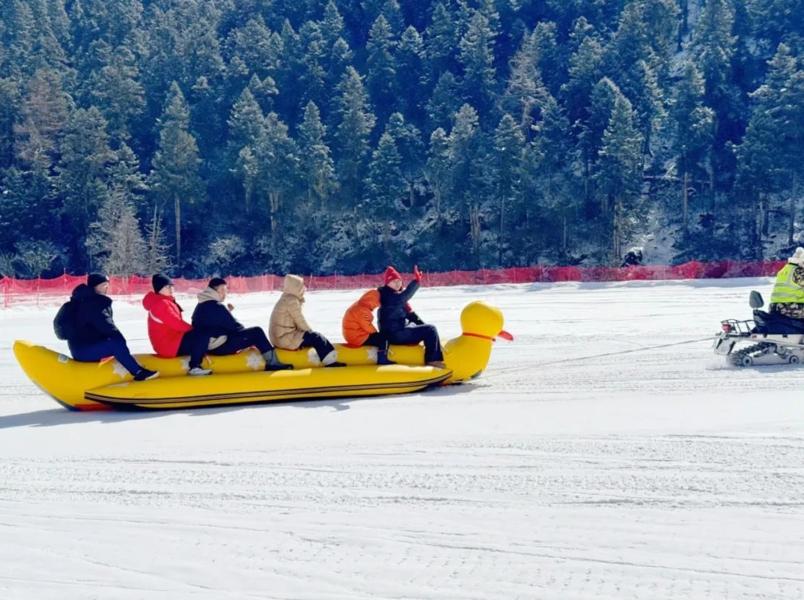 卓玛滩冰雪娱乐场 景区特意设置的成人滑雪道和儿童滑雪道,可快速体验单双板滑雪。初级、中级滑雪道,场内配备魔毯,可同时容纳多至约上千人进行冰雪娱乐,滑雪船等。