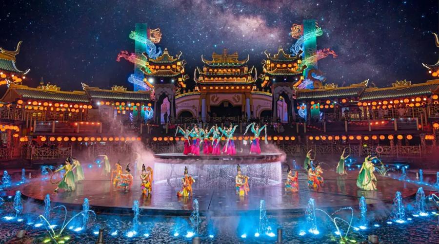 万岁山武侠城这里有梦幻的仙侠世界!逼真的视觉效果,融入互动体验和震撼特技。武侠表演“十字坡、武松醉打蒋门神、野猪林”等,同时还有歌舞秀《百乐门》等。在景区的建筑设计中武侠的元素有“倚天剑、霸王刀”等。