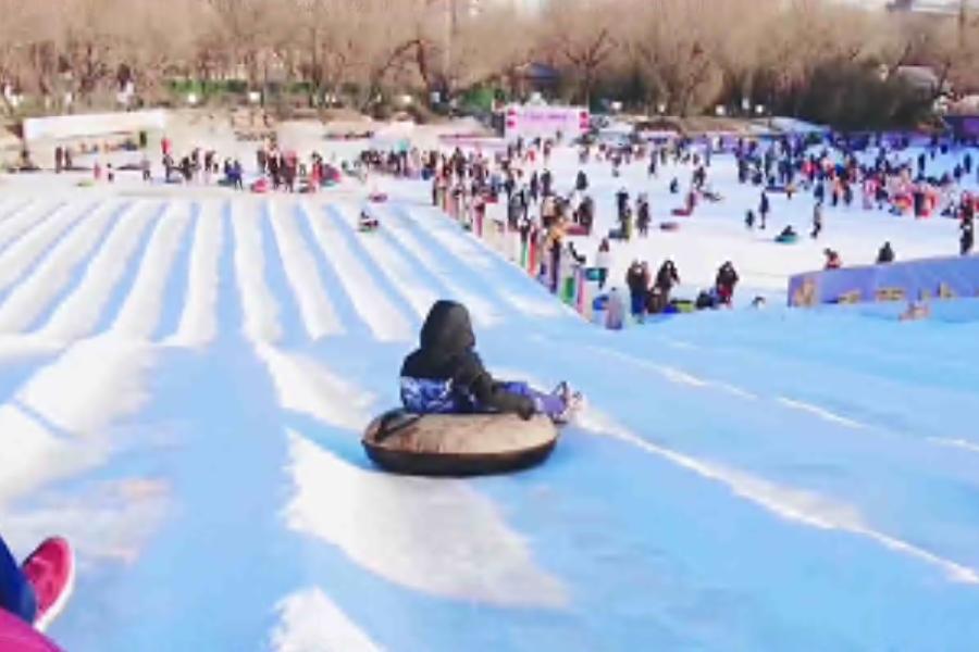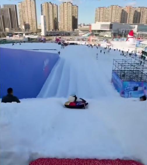 烟台欢乐雪世界,原塔山滑雪场,占地面积约3万平方米,山势陡缓显著,山前开阔平坦。有雪圈直道、
