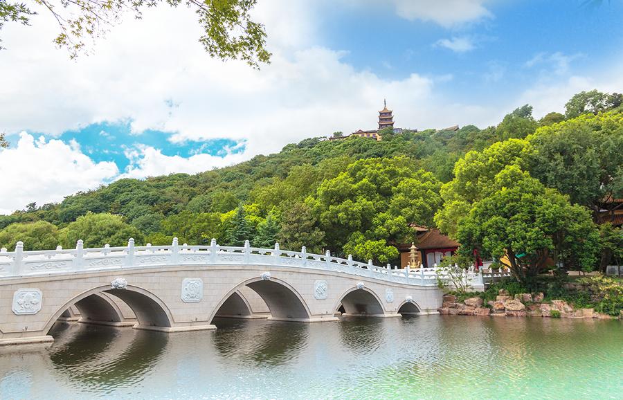 南通狼山风景名胜区,狼山是一座佛教名山,海拔约106.94米,但它和北京香山、陕西终南山、河南嵩山、浙江天台山、云南鸡足山、湖南衡山、江西庐山合称八小佛教名山。狼山文物古迹众多,寺庙建筑林立,以佛教文化为特色。狼山是西方三圣之一大势至菩萨的应化道场,同时供奉着全国乃至东南亚独特的一尊穿龙袍,坐龙椅的菩萨——大圣菩萨僧伽法师。
