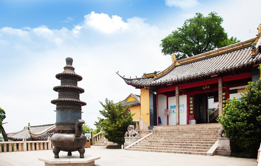 大殿是砖木结构,狼山广教寺创建于唐初。狼山作为大势至菩萨的应化道场,位列八小佛教名山之一。大势至菩萨佛像是1986年重塑,高约4.5米,是山顶佛像较大的一尊。