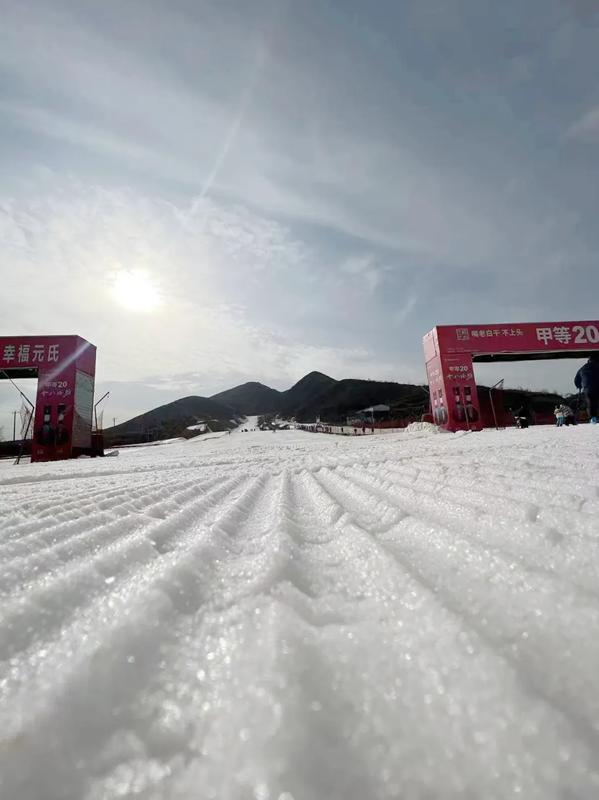 无极山滑雪场造雪面积约15万平方米,拥有雪道长度为约2600米,最大坡度27