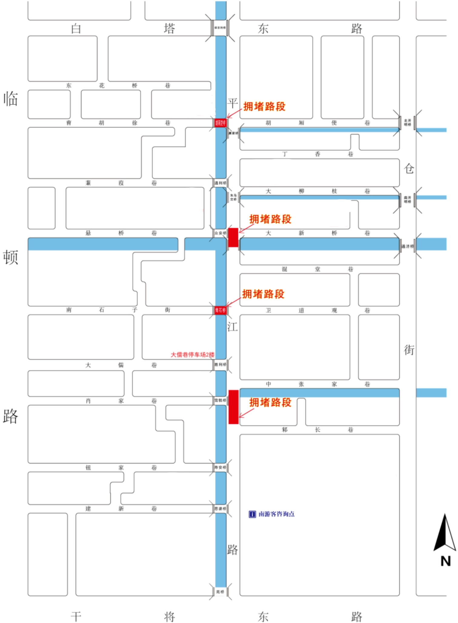 平江路有18个进出口,游客主要进出通道为平江路南入口、北入口、大儒巷、菉葭巷。