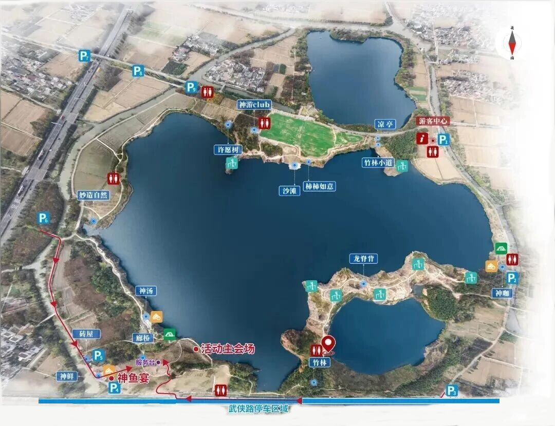 神仙湖神咖,长新路东侧“神咖”门口,从北面康庄路进入,南面武侠路出口。