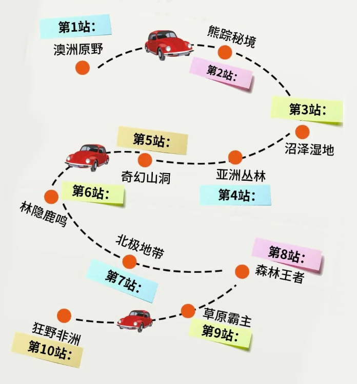 除了三大剧场,这些露天剧场的表演也同样精彩,森林欢乐秀,感受非洲友人的热情与力量,看他们带来充满异域风情的特色杂技,节奏欢快,感染力十足!森林狂响美妙的音乐在林中响起,是浪漫的情调背景音,也是走累了歇脚时的完美BGM。欢乐小丑滑稽幽默的小丑天团,用气球和随机互动,逗得孩子们哈哈大笑。压轴巨献,狂欢大巡游。不能错过的拍照与互动时刻!盛大的花车队伍、华丽的演员阵容、可爱的动物明星等。在这,快乐远不止于观看动物。从震撼人心的剧场大秀,到一路随行的惊喜互动,全天的欢乐都已为您安排妥当。