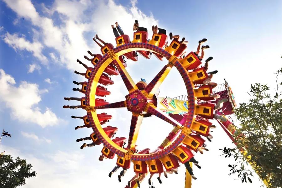 约360度急速旋转,上下往复摆荡,风驰电掣的速度,让你体验欢乐风暴的强劲旋律。巨幅转动,如飞碟腾空,挑战心理承受的阈值,大摆锤让您在极速俯仰之间体验到目眩神迷,在惊呼与欢笑中挑战自我。