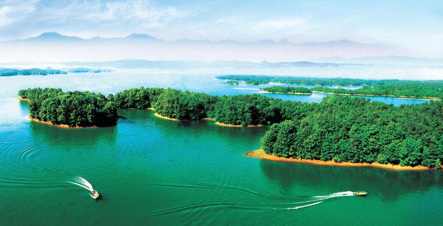 南湾湖风景区是乘船游于浩渺湖面与61座小岛来场浪漫邂逅。登上茶岛沿百米长廊漫步,登38米高的浉源阁,南湾湖全景尽收眼底。猴岛上萌猴活泼好动。鸟岛上栖息着白鹭、鸬鹚、梅花鹿、天鹅、矮小马、土拨鼠、豪猪等。