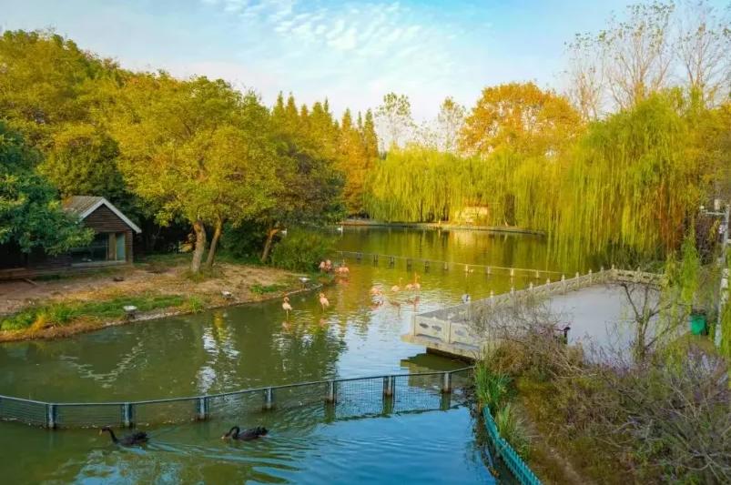 你沿着鹤鸣湖向东走,穿过一座石拱桥,视线定会被前方那片靓丽的“火焰”牢牢吸引——那便是火烈鸟。