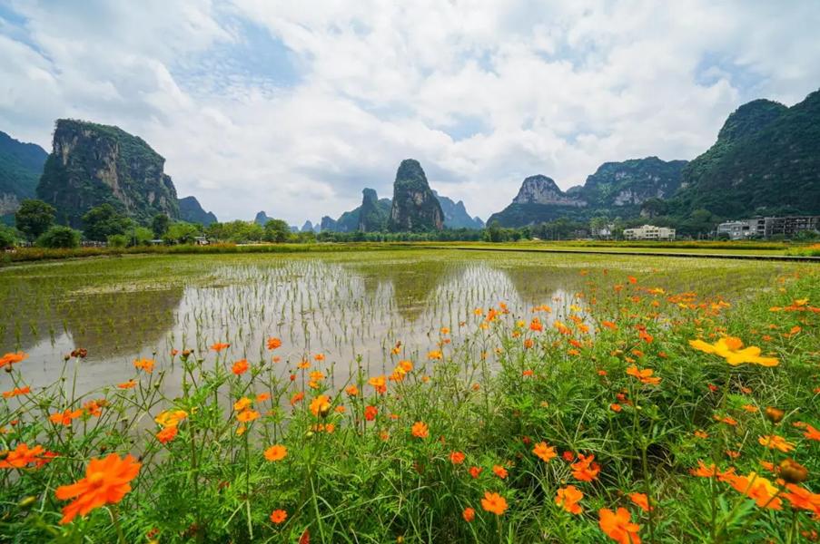 春风拂面时,骑车穿梭在绿野田园间,沿田边小路、河岸绿道骑行,一路与稻田相伴。左手是潺潺明仕河,右手是连片金稻,阳光透竹林洒斑驳光影。穿行于峰林、村落与翠竹之间,满眼绿意舒展,尽情享受自然的野趣。