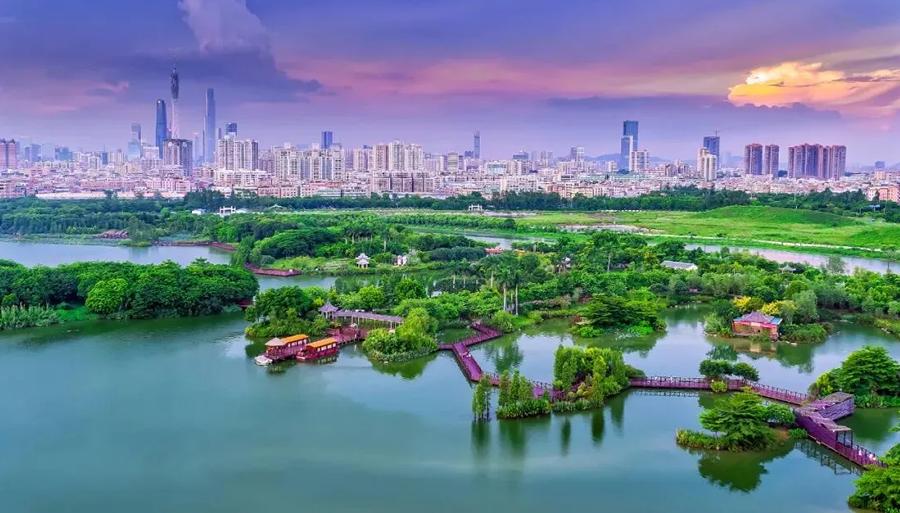 海珠国家湿地公园,是城市中轴线上的国家湿地公园,是较为稀缺的城央绿色空间,东临新光快速路,西临广州大道,北靠新滘南路,南临南洲路和环城高速公路,处于5条公路围成的“井”字形中间。公园环境优美,空气清新,打造粤式广府牌坊、镬耳屋、飞阁流丹仿古展厅群等一系列岭南水乡标志性建筑,水乡风情、自然野趣于一体的鲜明特色。景点区设置观鸟屋、湖岸柳堤、岭南景观街、亲水平台等。约一万亩的垛基果林湿地,湿地内种植了荔枝、石硖龙眼、红果杨桃、鸡心黄皮,以及香蕉类、芒果、胭脂番石榴、番木瓜等岭南佳果。