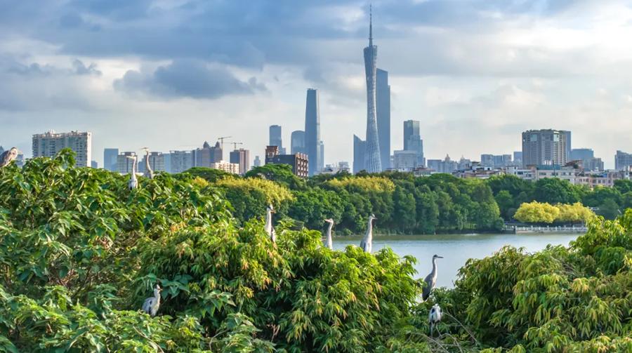1绿心湖:从海珠湿地北门进入,穿过大气恢宏的岭南石牌坊,第一个惊喜“绿心湖”,就在眼前展开。这是一池“活”的生态之水。湖里各种水生植物在此自在生长,共同维护着清澈的水质。湖中设有亲水栈道与景观平台,站在栈道上,一回头就能看到远处修长的“小蛮腰”广州塔划破天际。