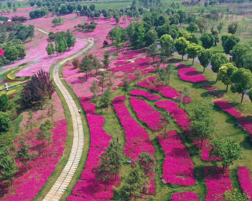 以自然大地为画布,利用土壤、栽种修剪植物、铺设岩石和有机覆盖物的方式,是将花木的绚烂与大地的肌理完美融合,在旷野间勾勒出灵动轮廓,是太平湖极具辨识度的艺术符号。