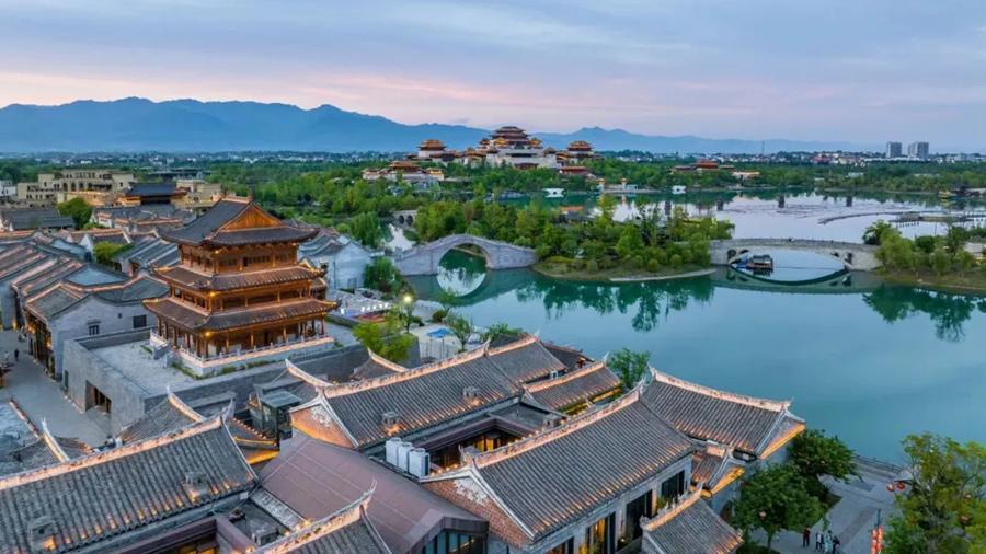 兴汉胜境景区,依汉源湖而建,占地约1.67平方公里,布局了汉文化博物馆、汉乐府、兴汉城市展览馆、张骞风情街、汉人老家街、汉源湖、湖心七岛、八大渡口等,丰富多彩的汉文化主题沉浸式盛宴。