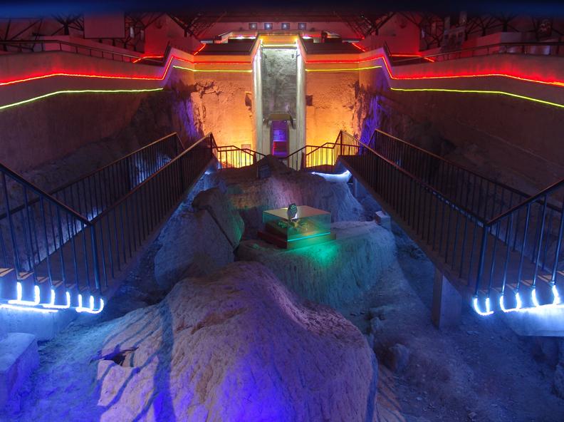 处于汉文化景区核心区的狮子山楚王陵,其主人很可能是西汉第三代楚王刘戊。该陵墓形制奇特,工程浩大,是一座罕见的特大型西汉诸侯王崖洞墓葬。狮子山汉墓是“凿山为藏”的横穴崖洞墓,但是该墓的外墓道北端内墓道上部有一长18.65米、宽13.2米、南端深8.45米、北端深10.9米的宽敞天井。