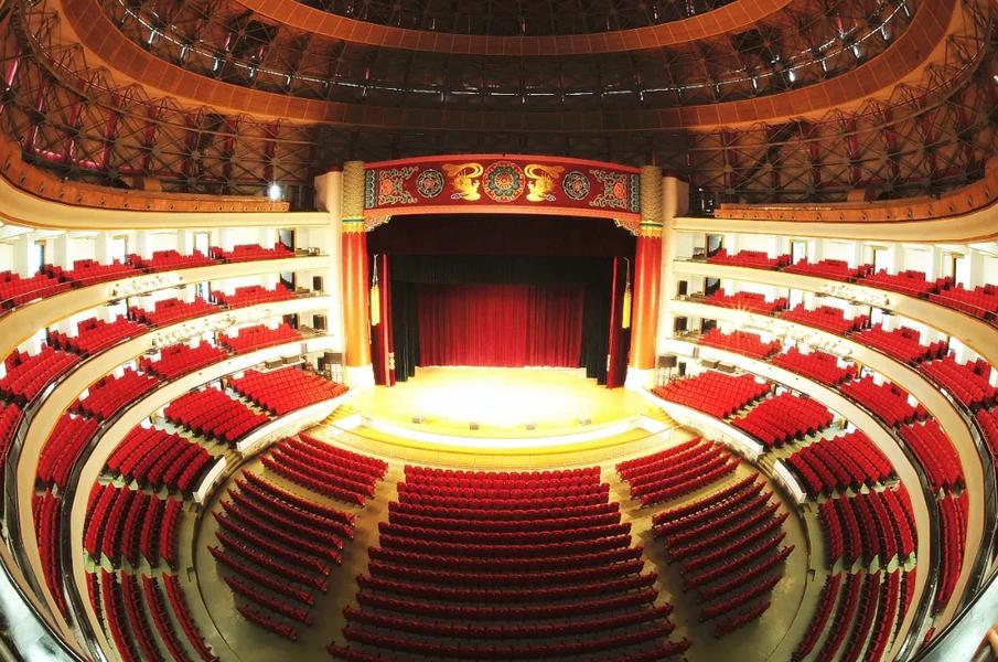 舞台高约14.36米,宽约23.2米,上方绘有民族彩绘,展现了浓厚的文化氛围。