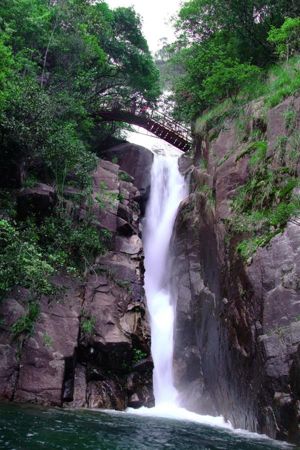 是夹在山缝之间的一道修长银瀑,形态酷似仙女下凡,形状宛如一位头戴斗笠、身穿长裙的仙女。落差约50米,午后常有彩虹出现,增添神秘色彩。