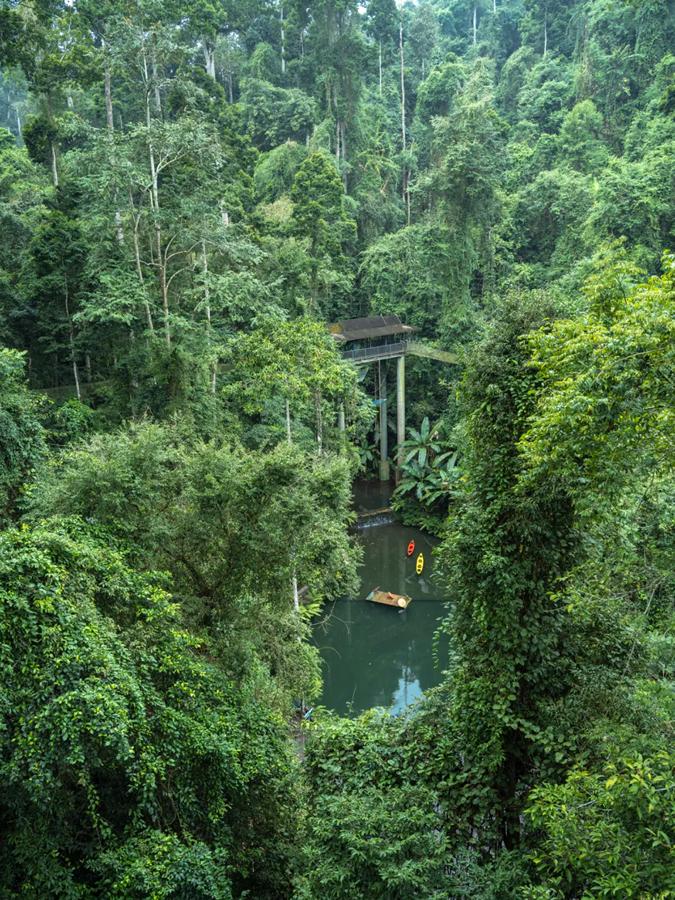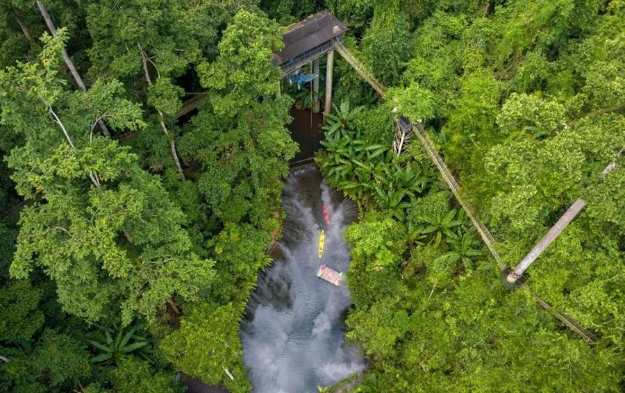 踏入茂密的热带雨林,各种奇特的动植物在这栖息;漫步在惊险刺激的空中树冠走廊,雨林就在脚下,观望天树群落及热带雨林林冠层生物活动的好去处;乘观光游船驶入南腊河,两岸茂密的热带雨林和生长在水中的雨林植物。