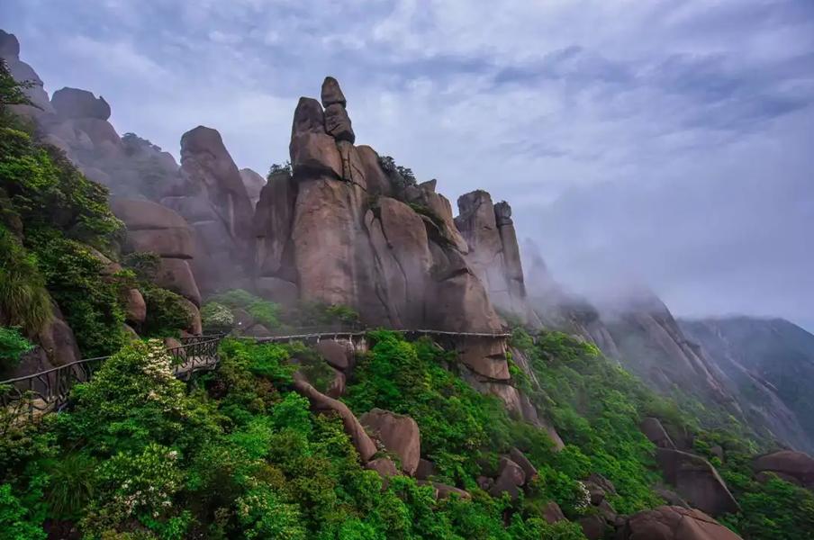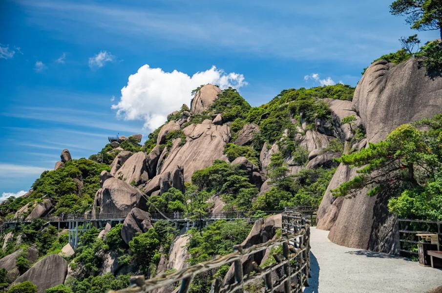 灵山风景区千姿百态的花岗岩造型石远近闻名,每一块怪石都仿佛藏着神秘故事,壮阔的华夏龙脊横亘山间,雄奇的雄霸天下石傲然挺立,威仪的封侯拜相石气度凛然,慈悯的观音送子石眉目含情,龟蛇合体纹理清晰可辨等。