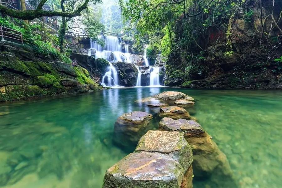 鼎湖山保存着400多年历史的南亚热带地带性常绿阔叶林原始次生林整片,森林覆盖率约98%。拥有高等植物约2500种、动物约327种、昆虫约980种,其中国家重点保护野生植物约23种、野生动物约32种,被誉为“北回归线带上的绿宝石”和“物种宝库”。漫步于林间小道,感受原生态的自然魅力。