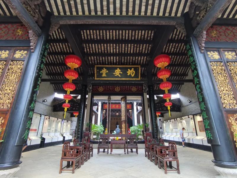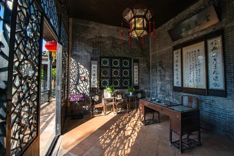 是余荫山房的主体建筑,也是园主会客之所,歇山顶建筑,外表华丽,内部装饰精细有檀香木雕屏、满洲窗、木刻花罩等富有岭南建筑风格特色。深柳堂内珍藏刘墉、翁方纲等清代名家书法作品。