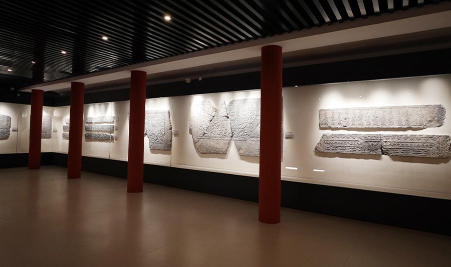 大汉王朝—石上史诗 南馆常设展览。“大汉王朝——石上史诗” 陈列,位于南馆,展览有六大部分,用馆藏精品画像石,解读汉文化中所包含的魅力,诠释两汉文化的灵魂。文物按照科学分类,由12个小单元展现汉代社会衣、食、住、行、征战比武、乐舞百戏、神话故事等社会百态,再现一个大气磅礴的时代,整个展览充溢着恢弘的史诗气氛。 一、神道天路 展出汉代陵墓前的神道雕刻,石羊、石兽等大型圆雕,均为国内重要发现。 二、祠堂敬祖 祠堂是陵墓的地面部分,复原展示了汉代祠堂建筑,表现了祠堂画像的精湛艺术。 三、天工神韵 突出汉画像石的艺术特征,按时代顺序展出阴线刻、浅浮雕、高浮雕、圆雕等各种不同雕刻风格的画像石,体现出汉代艺人的高超技艺。 四、千秋地宫 复原展出二座不同风格的汉画像石墓葬,表现出汉代的地下建筑艺术。 五、汉石春秋 以史诗的形式,按画像的题材分类,展出牛耕、纺织、车马出行、宴乐会饮、乐舞百戏、历史故事、神话传说等不同内容的画像石刻,表现汉画像石的题材丰富。 六、刻铭题记 展出20多块汉碑刻铭和有文字题记的石刻画像,表现汉代书法艺术的卓越成就。陈列全面、立体地反映了徐州汉画像石艺术馆在文物收藏、科学研究及陈列艺术方面的成绩,使观众能够全方位地了解徐州汉画像石。