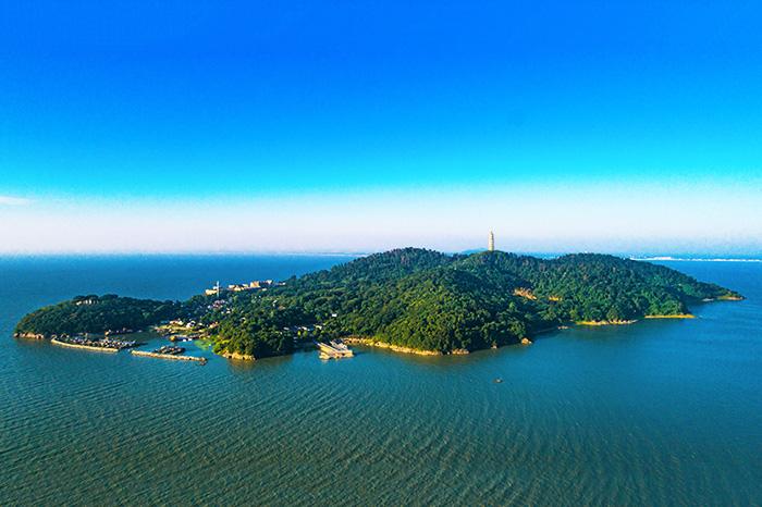 位于姥山岛山巅,初建于明代崇祯四年(1631年),塔高七层,51米,133级,系条石青砖结构,层层飞檐走角,八角对着八方,角角装有铜铃。塔身由外壁、回廊、塔心三部分组成,人入塔内,门梯交错,左拐右旋,乐趣无穷。塔壁四周有砖雕佛像约802尊,石刻匾额题词25件。人立塔上,只觉风声呼啸,铜铃叮当,如立云端之上。倚窗远望,烟波浩淼,渔帆点点;近观脚下,姑、鞋二礁如在雾中。2019年,被列入全国重点文物保护单位。