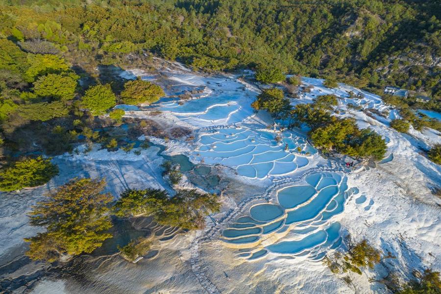 游玩路线第3步:游览完坛城,顺大门移步到7楼观景台,在这里可以看到整个香格里拉市白天与夜间不同的全景,是一个不错的拍照打卡地。