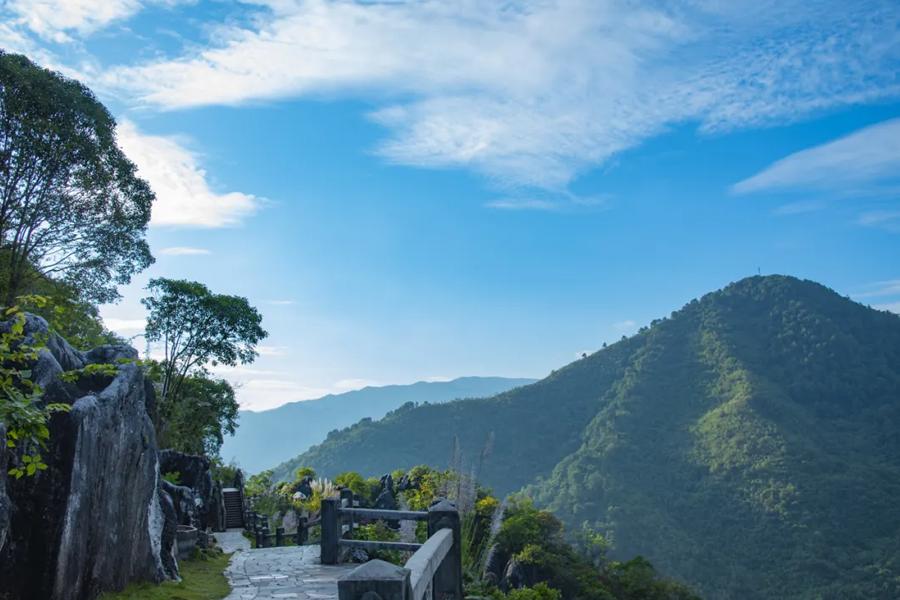 姑婆山国家森林公园以茶园、瀑布和秀美山水闻名,距玉石林约20公里。