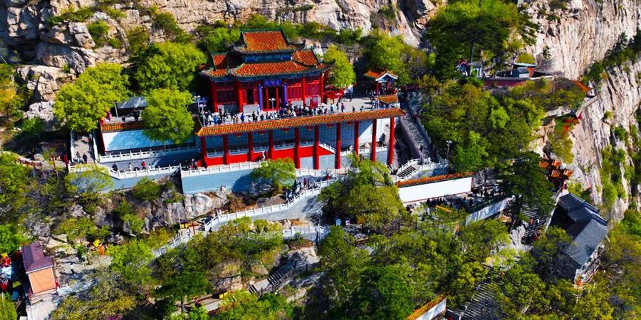 筑于陡崖绝壁之畔,势若凌空飞悬,风景绝佳。上院坐落在北部山峰中间的一个横断裂石缝中,石缝中供奉着用花岗岩雕刻的观音老母像,即著名的"歪脖老母"。这尊观音像因《东北古迹轶闻》中的记载传说而闻名遐迩,成为青岩寺的标志性景观。