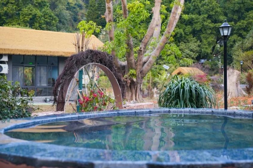 贺州温泉青山环抱,环境清幽,拥有艾草温经通络,生姜发汗解表,特色瑶浴池瑶药传统秘方,薄荷浴等;舒坦的莫过于一头扎进温泉池里,泉水恒温浸润,轻轻漫过肩头,泡去疲惫,泡去烦恼,享受在露天泳池,如此的惬意。